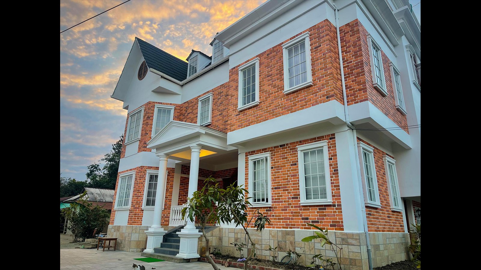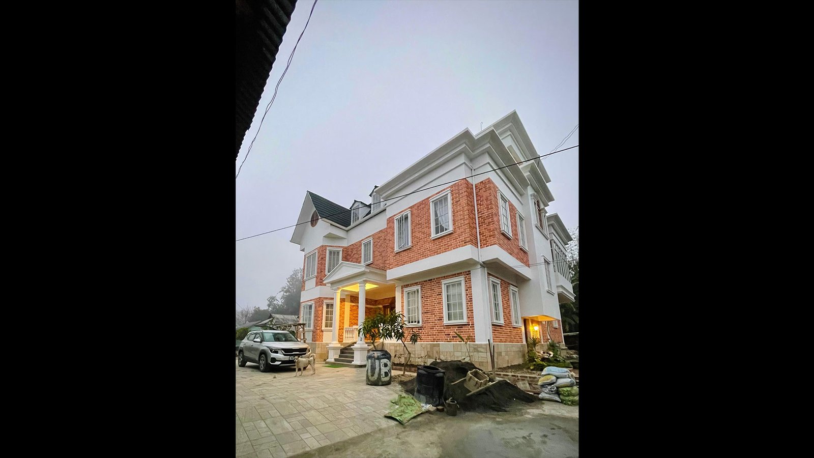 This residence stands as a testament to sophisticated design thinking—offering both visual grandeur and functional livability suited for contemporary family life in North-East India. This residence exemplifies a harmonious blend of classical elegance and modern comfort, designed to stand out with its distinguished brick-and-white facade and stately architectural proportions.